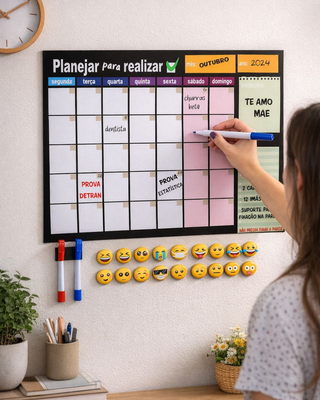 Perfeito para ambientes como home office, escritórios, salas de estudo, cozinhas ou espaços compartilhados, o planner de parede é uma ferramenta simples, porém poderosa, para quem busca mais controle e menos improviso no dia a dia.